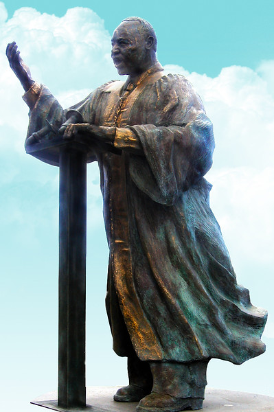 The Reverend Martin Luther King wears his pastor's robe which we guess slipped over a civilian costume. He therefore presents him in his entire character, a man of faith, a politician and a civil man.